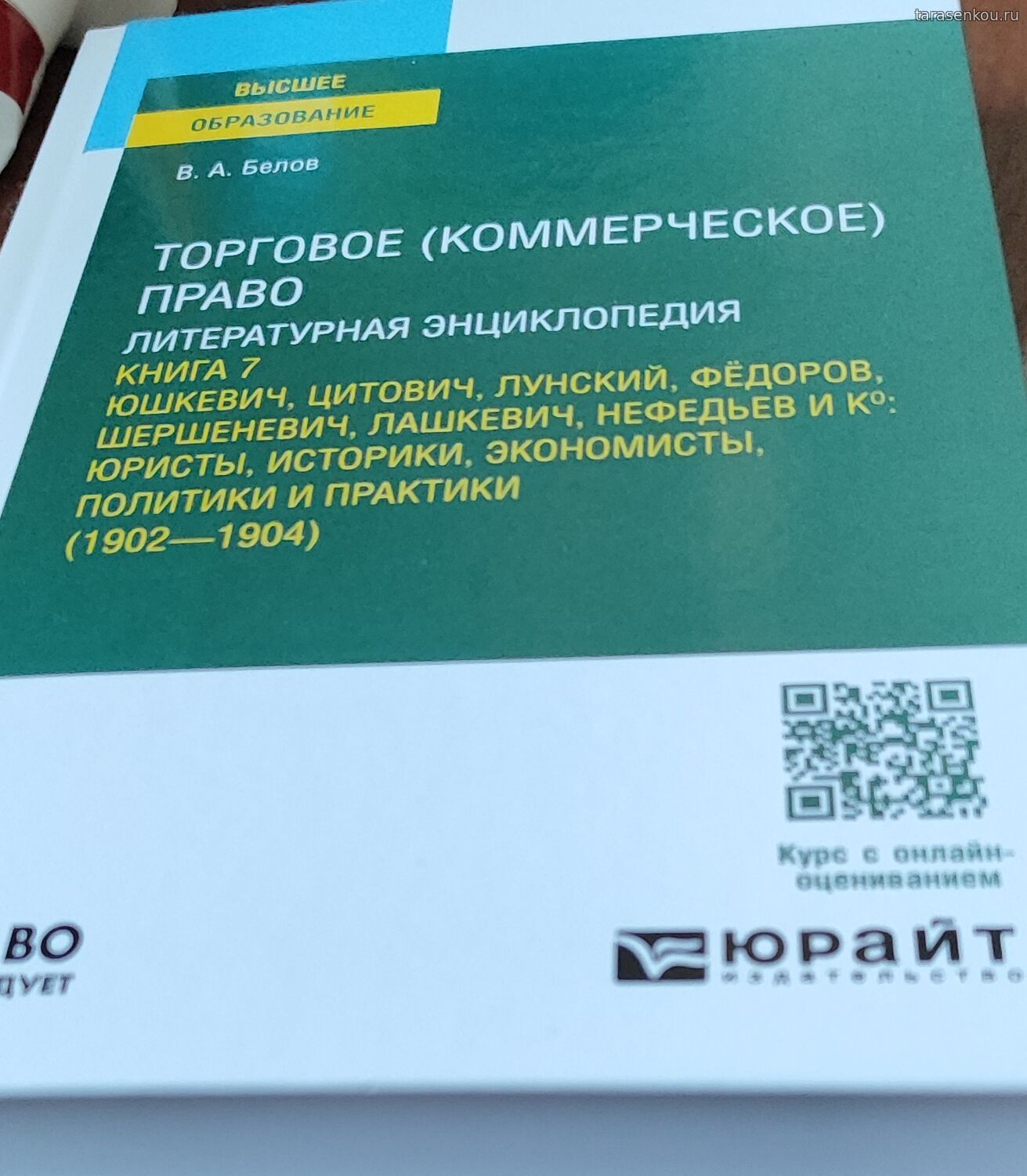 Вышел в свет 7 том литературной энциклопедии по торговому праву, принадлежащий перу проф. Белова В.А. Том охватывает обзор литературных источников по коммерциалистике в период с 1902 г. по 1904 г. Сюда вошли труды таких учёных, как Юшкевич, Цитович, Лунский, Фёдоров, Лашкевич, Шершеневич. Тут и юристы и экономисты, пишущие на правовые темы и политики и историки. Данный том содержит 511 страниц. |