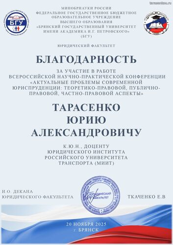 | 20 ноября 2025 г. принял участие в конференции Брянского государственного университета.
