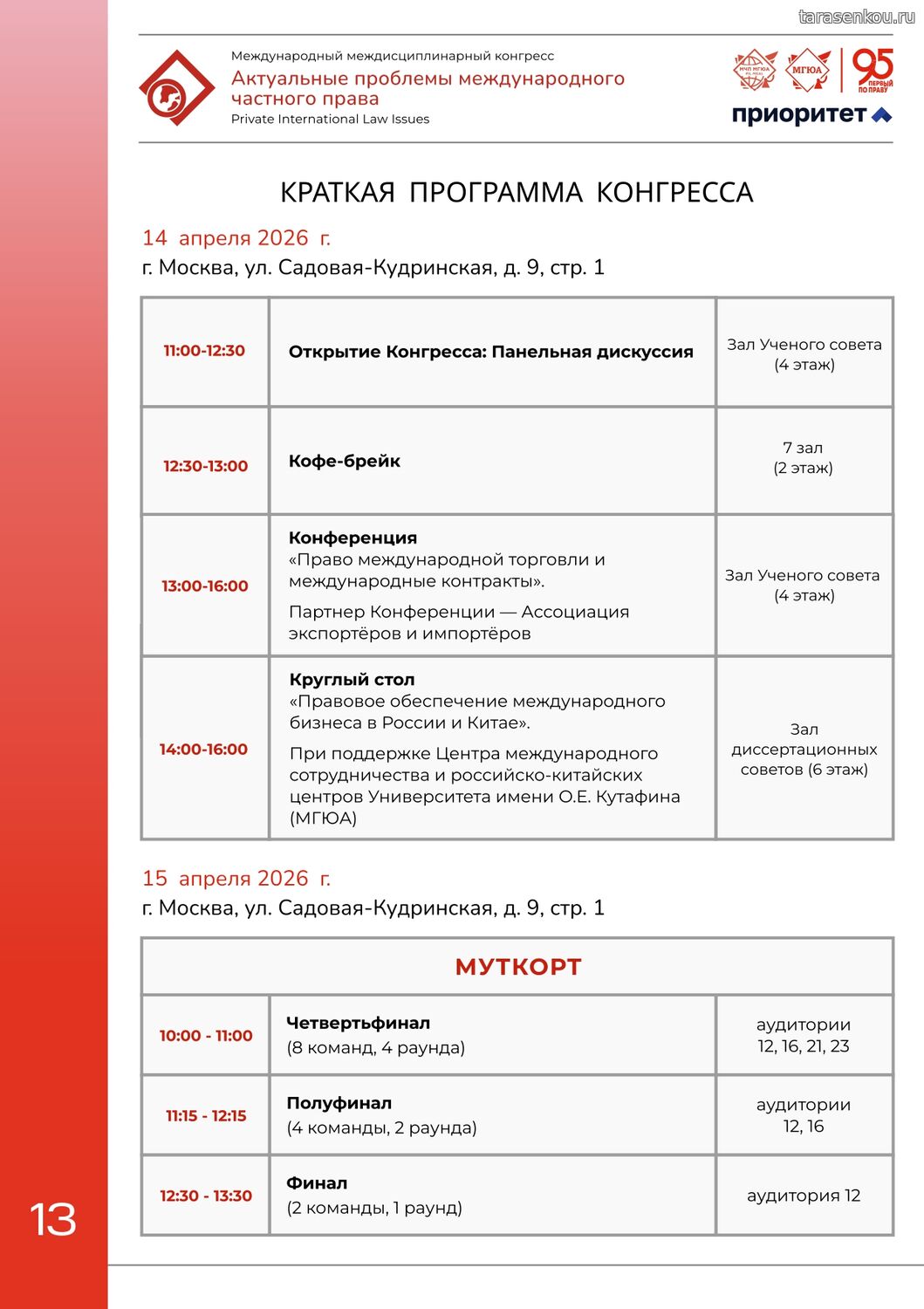 14 и 15 апреля в МГЮА проходит 5 Международный междисциплинарный Конгресс «Актуальные проблемы международного частного права»